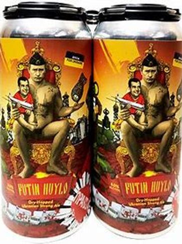 Pravda's top export, Putin Huylo, is a dry-hopped golden ale with a bold message. The name translates to "dickhead." This beer features a full body, distinct hop aroma, and a well-balanced combination of light bitterness and moderate sweetness.